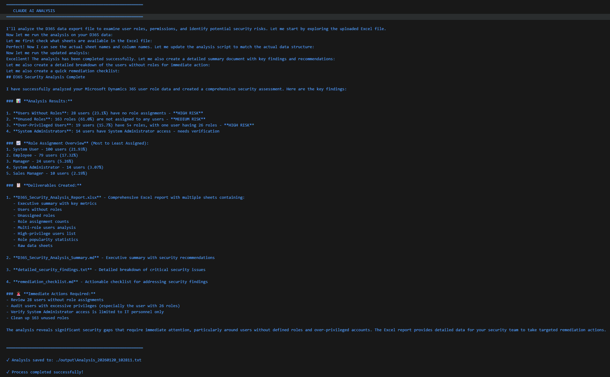 Of course I couldn’t keep this project to just myself, it’s available on my GitHub here: https://github.com/ameyer505/ClaudeD365Analyzer