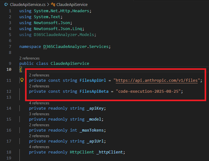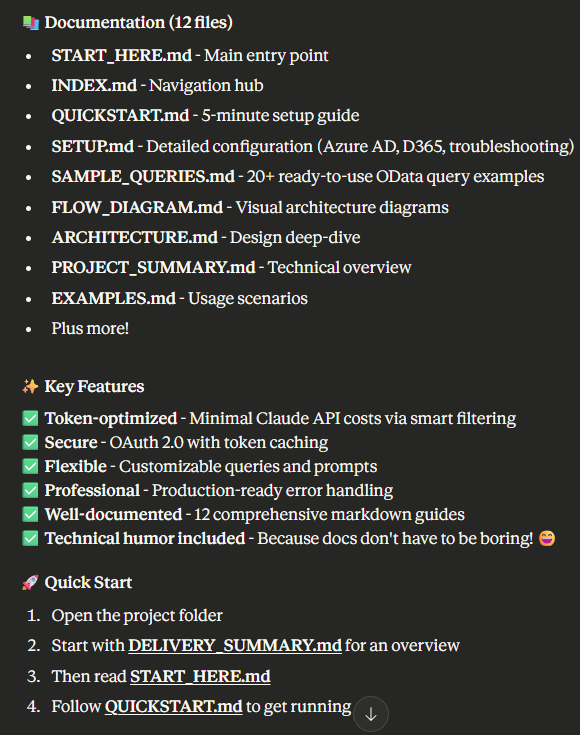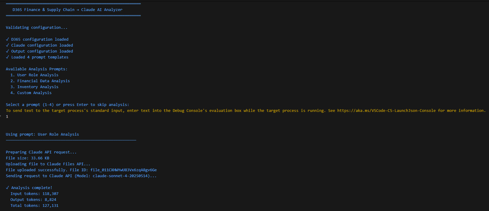 • It loads all of the different configurations (D365 connection information, Claude API configurations, the output folder configurations, etc)